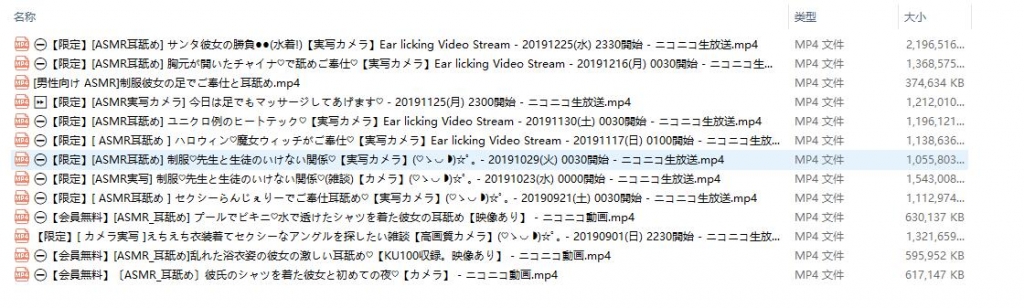 macoto除了写实以外,经常也会弄些舔耳的音频和助眠的,这就是为什么数量这么多而不及日南,音频这块还是挺多的。音频和视频都是单独分开的,全部都是单独压缩。